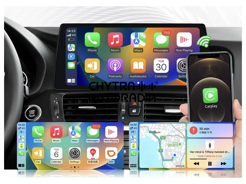 Bezdrátový Apple CarPlay a Android Auto umožňují pohodlné propojení chytrého telefonu s Android rádiem bez nutnosti použít USB kabel. Po spárování přes Bluetoothnebo Wi-Fi můžete ovládat navigaci, hudbu, hovory i zprávy přímo na displeji rádia pomocí dotyku nebo hlasových asistentů (Siri / Google Assistant). Funkce zajišťuje bezpečnější a komfortnější používání telefonu během jízdy.
