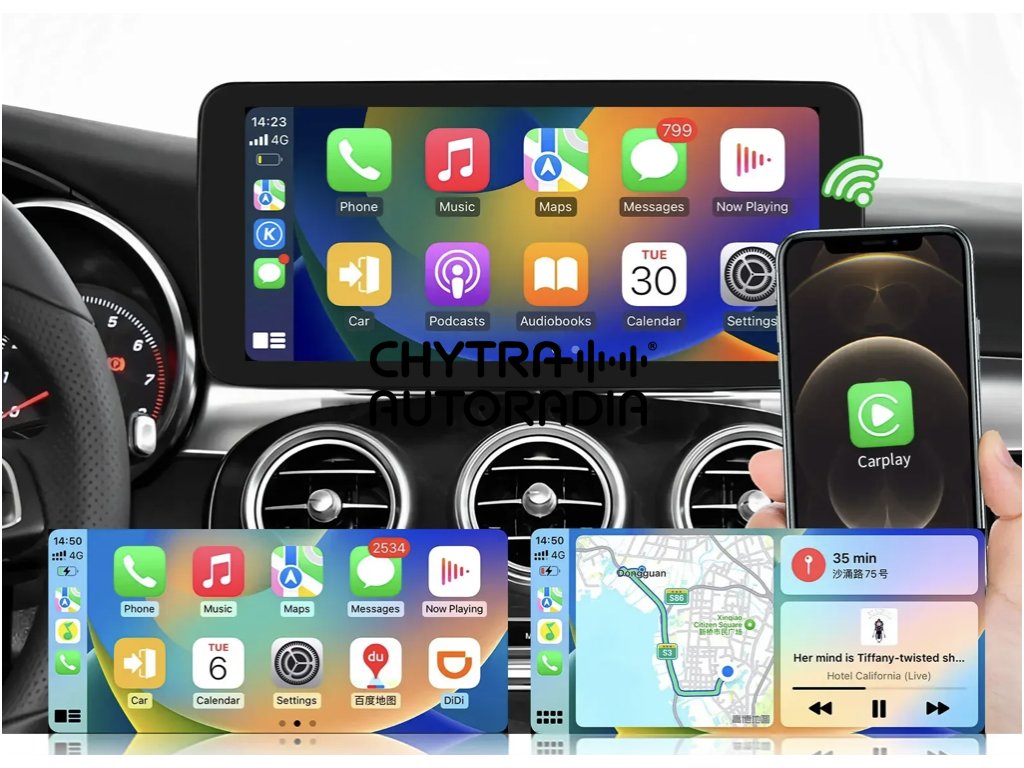 Moderní 10,25" autorádio s dotykovým displejem a vysokým rozlišením 1920 x 720 px je navrženo speciálně pro vozidla Mercedes-Benz. Běží na systému Android 13 a nabízí rychlé a plynulé uživatelské prostředí. Díky Bluetooth 5.0(dvoukanálový), Wi-Fi připojení a slotu pro SIM kartu budete neustále online. Rádio zachovává původní jednotku a infotainment systému, takže nepřijdete o žádné tovární funkce. Plně podporuje ovládání z volantu, parkovací senzory, originální parkovací kameru i ostatní nastavení vozidla. Samozřejmostí je bezdrátová podpora Apple CarPlay a Android Auto pro maximální komfort během jízdy.