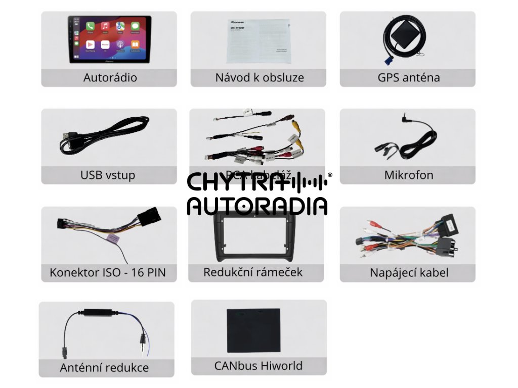 Autorádio Pioneer SPH-PF97BT s velkým 9" dotykovým displejem nabízí moderní výbavu včetně bezdrátového Apple CarPlay a Android Auto, Bluetooth handsfree, WebLink 3.0 a kvalitního DSP zvukového procesoru. Díky podpoře couvací kamery, jednoduchému ovládání a konstrukci PERFECT FIT, která umožňuje instalaci do různých typů vozidel, je ideální volbou pro každého, kdo chce komfort, bezpečnost a špičkový zvuk v jednom zařízení.