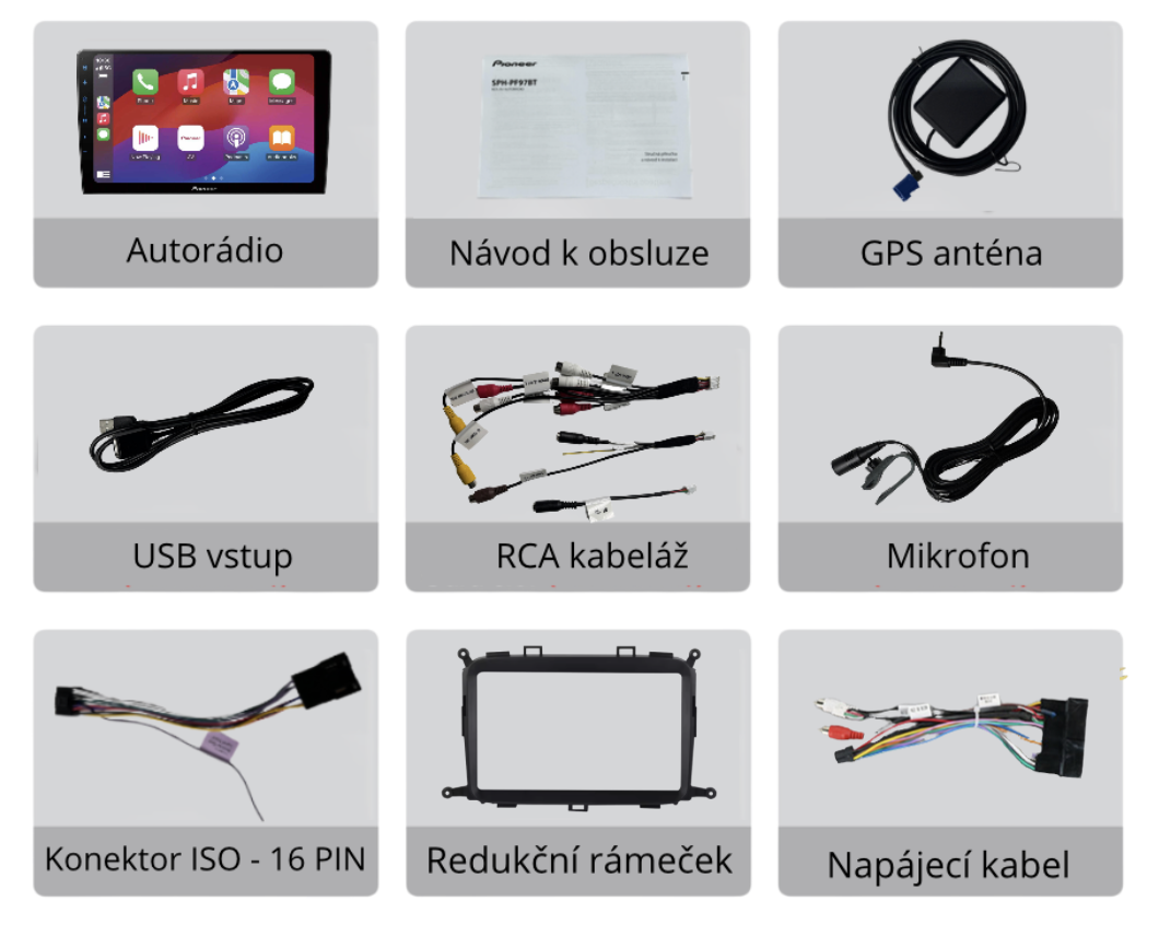 Autorádio Pioneer SPH-PF97BT s velkým 9" dotykovým displejem nabízí moderní výbavu včetně bezdrátového Apple CarPlay a Android Auto, Bluetooth handsfree, WebLink 3.0 a kvalitního DSP zvukového procesoru. Díky podpoře couvací kamery, jednoduchému ovládání a konstrukci PERFECT FIT, která umožňuje instalaci do různých typů vozidel, je ideální volbou pro každého, kdo chce komfort, bezpečnost a špičkový zvuk v jednom zařízení.