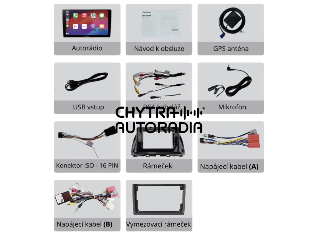 Autorádio Pioneer SPH-PF97BT s velkým 9" dotykovým displejem nabízí moderní výbavu včetně bezdrátového Apple CarPlay a Android Auto, Bluetooth handsfree, WebLink 3.0 a kvalitního DSP zvukového procesoru. Díky podpoře couvací kamery, jednoduchému ovládání a konstrukci PERFECT FIT, která umožňuje instalaci do různých typů vozidel, je ideální volbou pro každého, kdo chce komfort, bezpečnost a špičkový zvuk v jednom zařízení.
