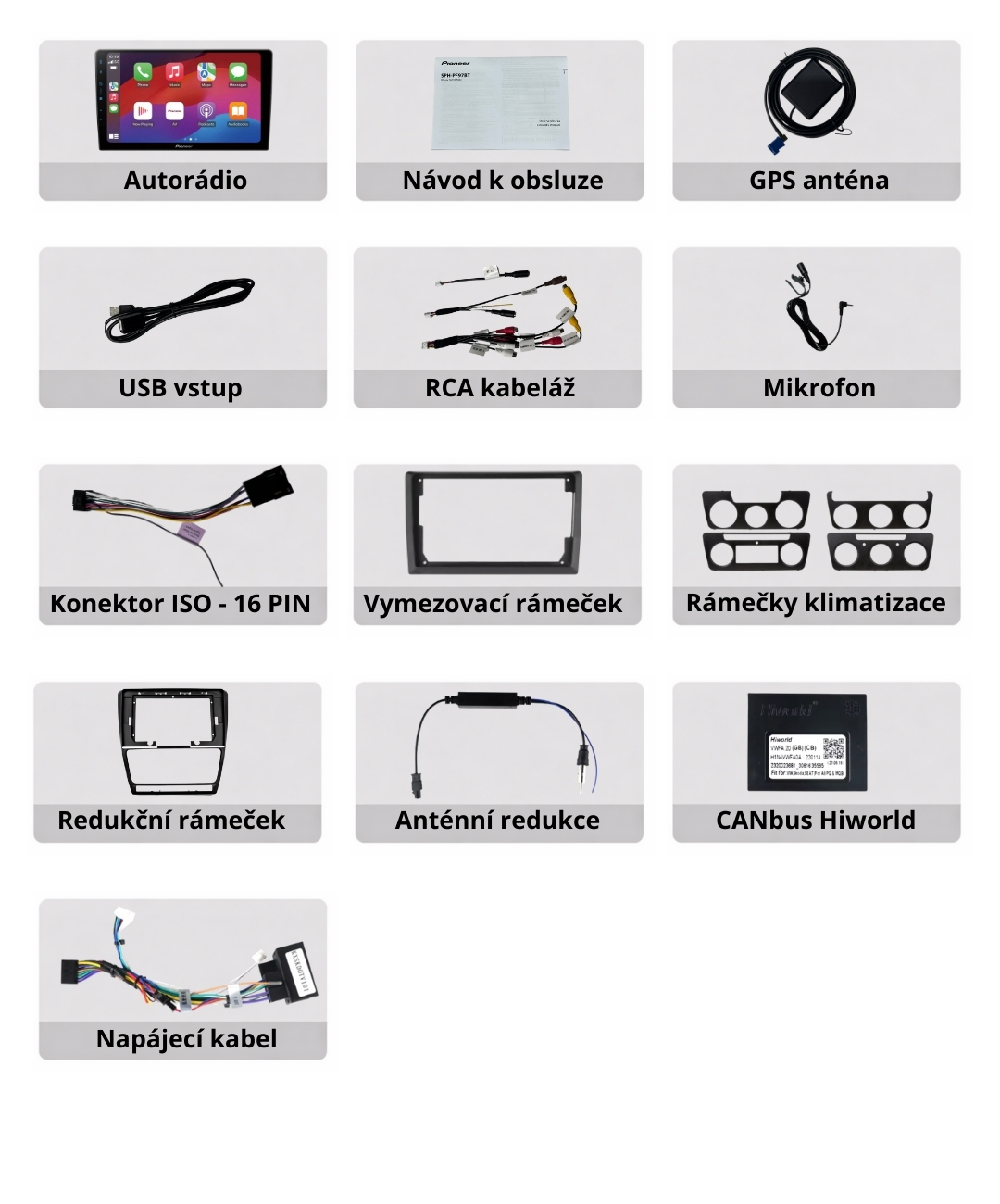 Autorádio Pioneer SPH-PF97BT pro Škoda Octavia 2, černý rámeček