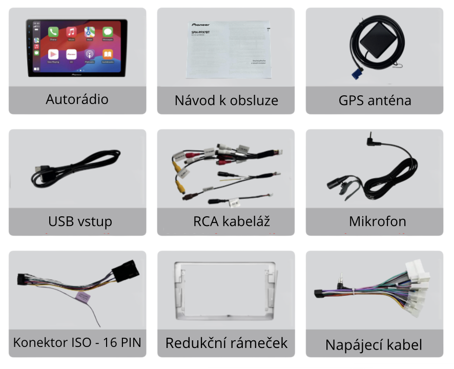 Autorádio Pioneer SPH-PF97BT s velkým 9" dotykovým displejem nabízí moderní výbavu včetně bezdrátového Apple CarPlay a Android Auto, Bluetooth handsfree, WebLink 3.0 a kvalitního DSP zvukového procesoru. Díky podpoře couvací kamery, jednoduchému ovládání a konstrukci PERFECT FIT, která umožňuje instalaci do různých typů vozidel, je ideální volbou pro každého, kdo chce komfort, bezpečnost a špičkový zvuk v jednom zařízení.