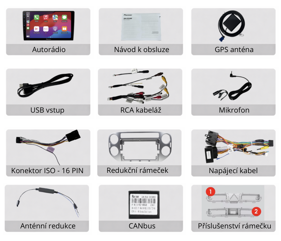 Autorádio Pioneer SPH-PF97BT pro VW Tiguan 1 / šedý rámeček