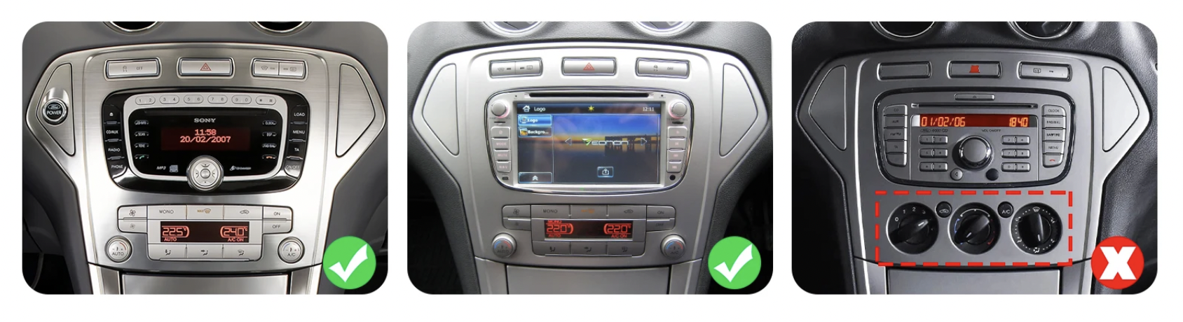 - Autorádio lze instalovat místo továrních autorádií na obrázku - NELZE INSTALOVAT DO VOZIDEL S MANUÁLNÍ KLIMATIZACÍ.