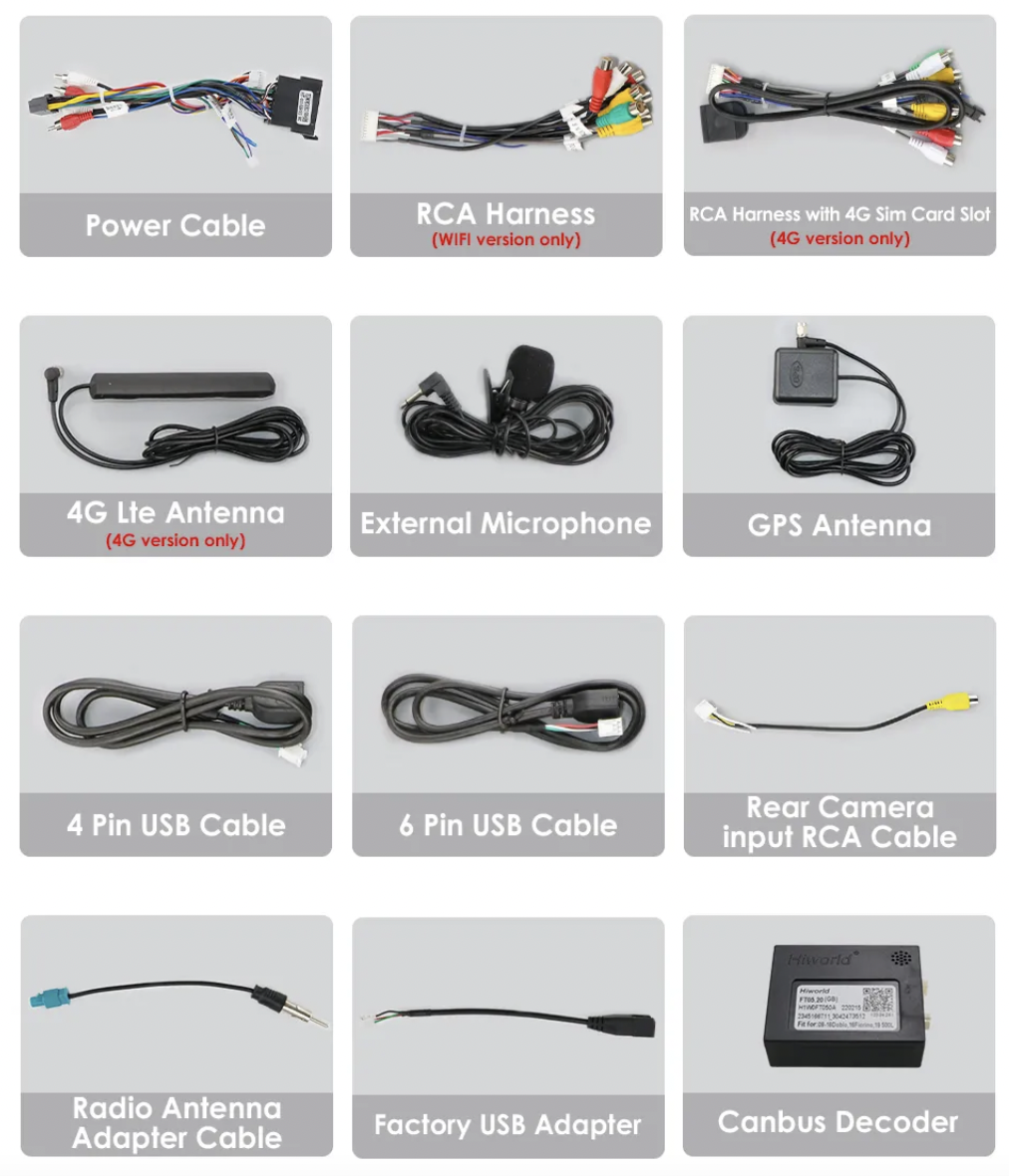 - Kabel pro připojení parkovací kamery,