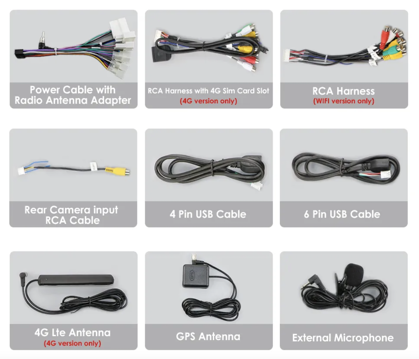 - Kabel pro připojení parkovací kamery,