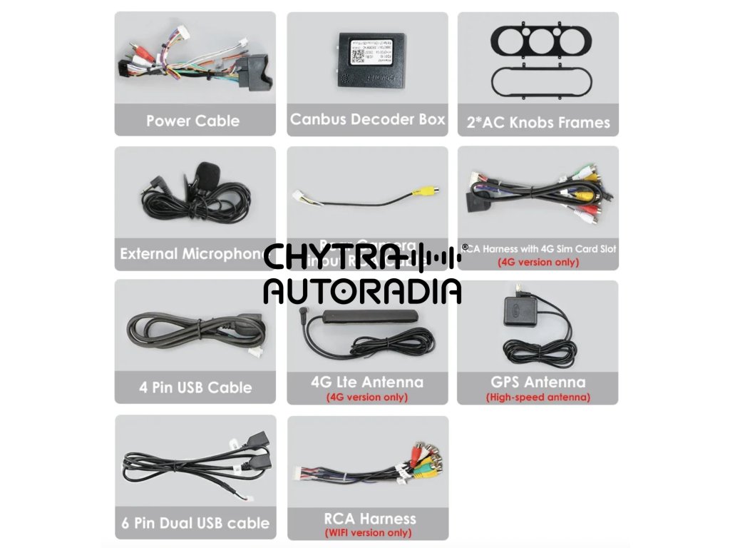 Rychlý systém Android 13 nabízí bezdrátové zrcadlení pro snadné propojení s Android i iPhone. Díky Apple CarPlay a Android Auto máte rychlý přístup k funkcím telefonu. Bluetooth umožňuje příjem hovorů a přehrávání hudby přímo z telefonu. Rádio lze připojit k Wi-Fi nebo vložit SIM kartu (pouze u některých výkonnostních verzí) pro připojení k internetu. Integrovaná navigace IGO Primo funguje bez internetu a rádio podporuje tlačítka na volantu i parkovací senzory. K dispozici je také možnost připojení parkovací kamery (CINCH). Rádio se automaticky vypne po vytažení klíče, aby nevybíjelo baterii.