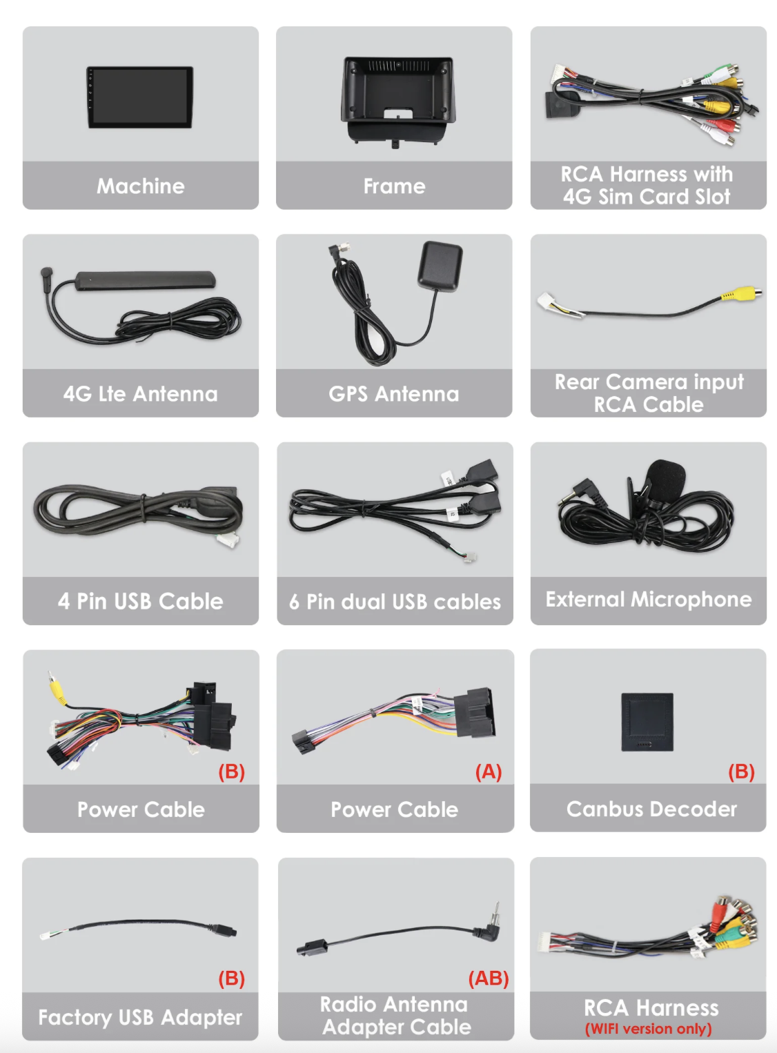 - Na výběr mezi kabeláží typu A nebo B, podle druhu továrního autorádia ve vozidle.