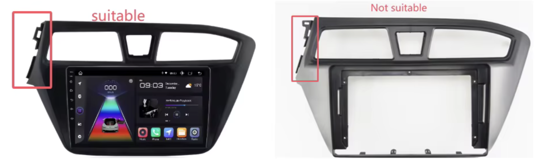 Pokud má váš tovární rámeček patky, jako na pravém obrázku, pak je rámeček s vaším vozidlem kompatibilní. Pokud máte patky, jako na levém obrázku, pak není produkt kompatibilní.