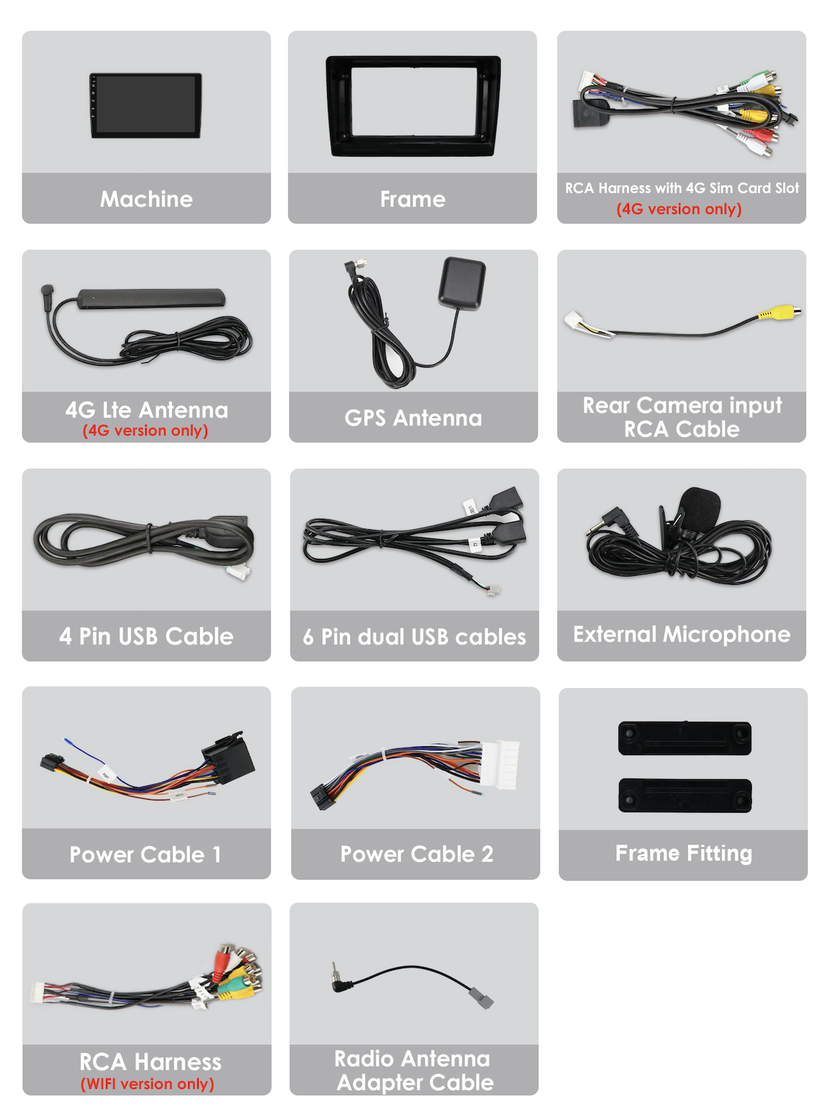 - Kabel pro připojení parkovací kamery,