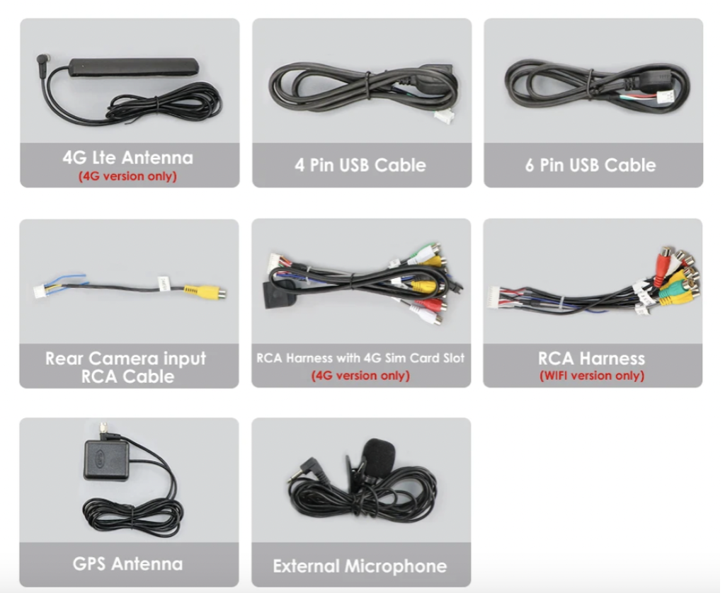 Autorádio je vybaveno celkem třemi USB vstupy, které jsou vyvedeny pomocí kabelů ze zadní strany autorádia a slouží k připojení různého příslušenství, jako je DVR kamera, DAB+ anténa nebo TPMS modul. USB kabely mají dostatečnou délku, aby bylo možné je vyvést na vhodné místo v interiéru vozidla, například do přihrádky u spolujezdce.