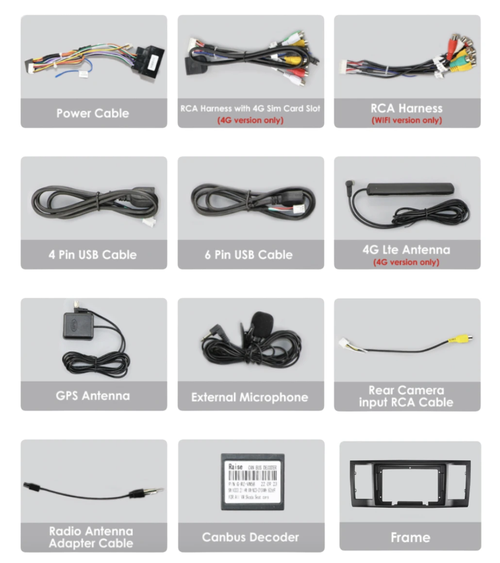 - Kabel pro připojení parkovací kamery,