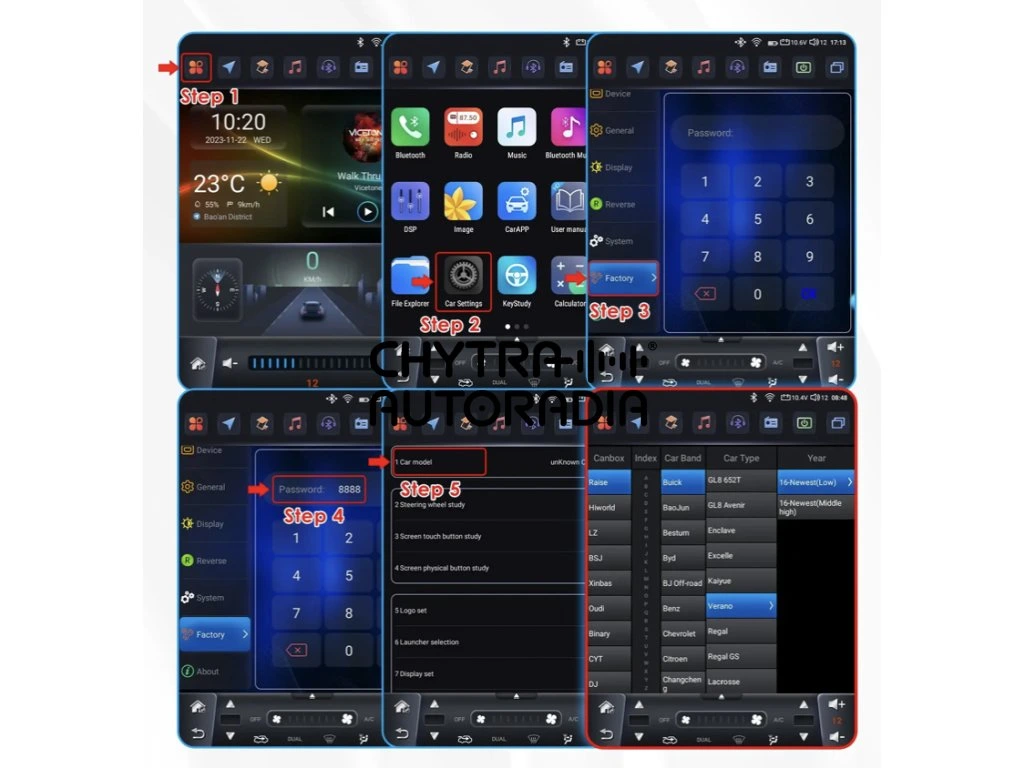 Pro komunikaci autorádia s vozidlem je nutné nastavit model vozidla podle obrázku