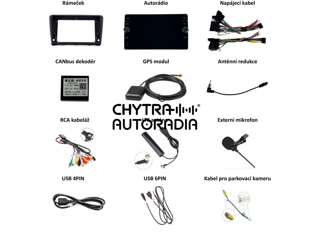 Součástí balení je CANbus dekodér, který po správném nastavení modelu vozidla v nabídce Factory Settings umožňuje autorádiu plnohodnotně komunikovat s řídicí jednotkou automobilu. Díky tomu jsou automaticky rozpoznány a funkční tlačítka na volantu, parkovací senzory i další systémová nastavení vozidla. CANbus zajišťuje plynulou integraci mezi autorádiem a elektronikou vozu, takže všechny originální funkce zůstávají zachovány a rozšiřují se o nové možnosti ovládání a zobrazení informací.
