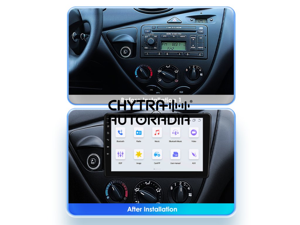 Rámeček s napájecím kabelem pro 9" autorádio Ford Focus 1 / Fiesta 4