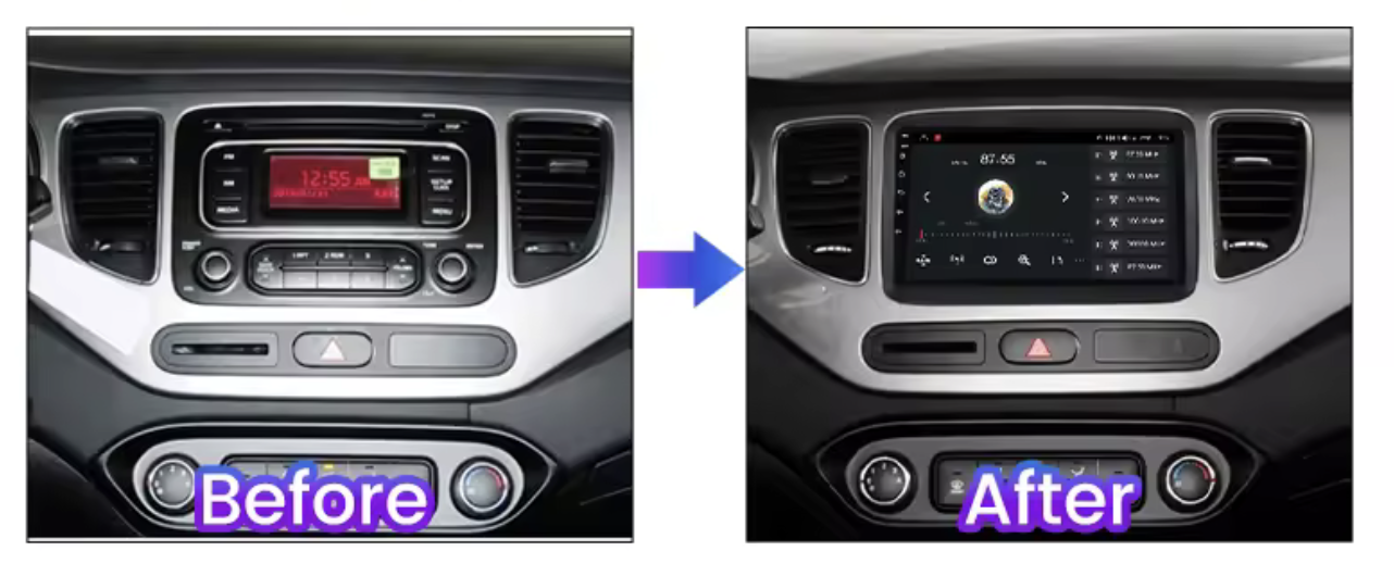 Redukční rámeček pro 9" autorádia s operačním systémem Android do vozidel Kia Carens.