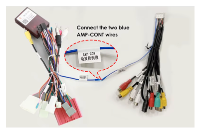 - Kabeláž podporuje BOSE reproduktory, pro jejich funkci je potřeba připojit kabel se štítkem AMP-CON na +12V.