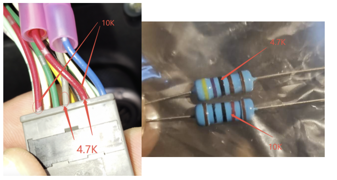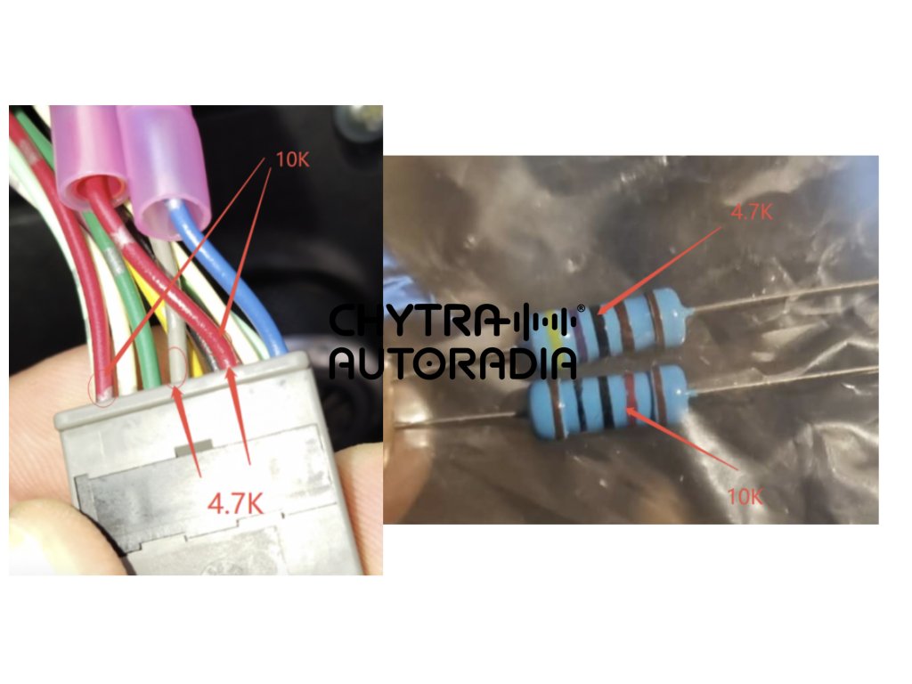 Po instalaci autorádia je také potřeba zapojit 4.7K a 10K rezistory do konektorů kontrolky airbagů, aby došlo k vymazání chybové hlášky airbagů. Pokud se i zapojení rezistorů vyskytuje chybová hláška airbagů, pak je nutné tuto chybu diagnosticky vymazat.