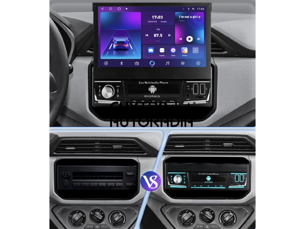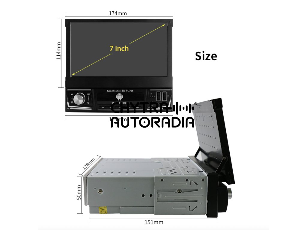 -Autorádio je klasického 1DIN rozměru, a pasuje i do jakéhokoliv jiného vozidla.