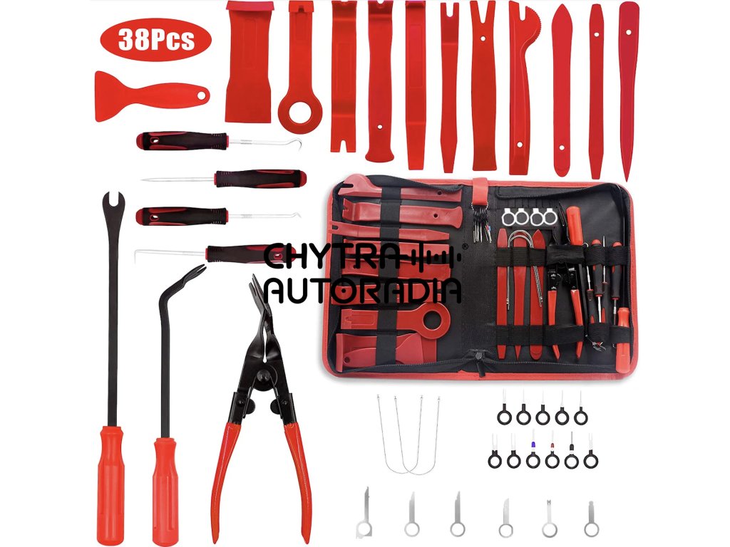 Celkově je 38dílná sada nástrojů pro demontáž plastového obložení a přístrojové desky a uvolňovací klíče cennou sadou pro každého, kdo pracuje na autech nebo chce provádět opravy. Se správnými nástroji lze demontáž a instalaci vnitřních a vnějších součástí provést rychle a snadno, aniž by došlo k poškození vozu.